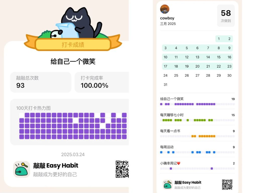 敲敲的打卡广场里有很多小习惯: