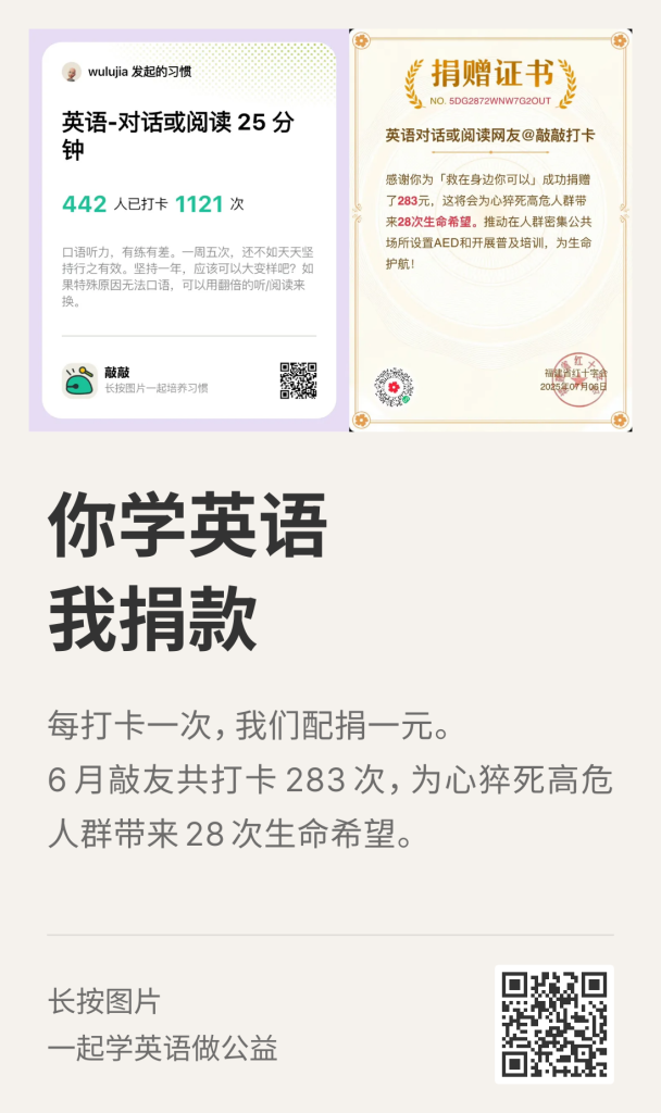 这是敲敲打卡的一个公益项目:「一起打卡一起捐」。