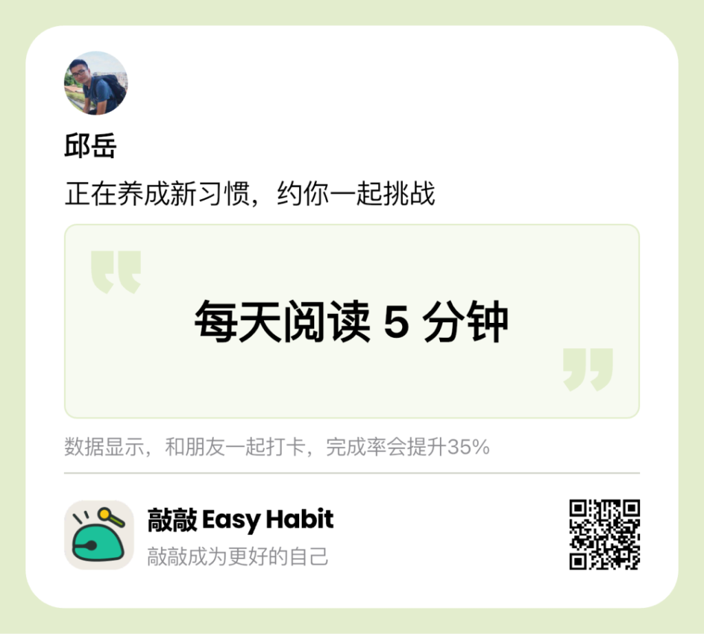 我在「敲敲」App 里发起了一个打卡小组,和大家一起互相监督努力建立起阅读习惯。